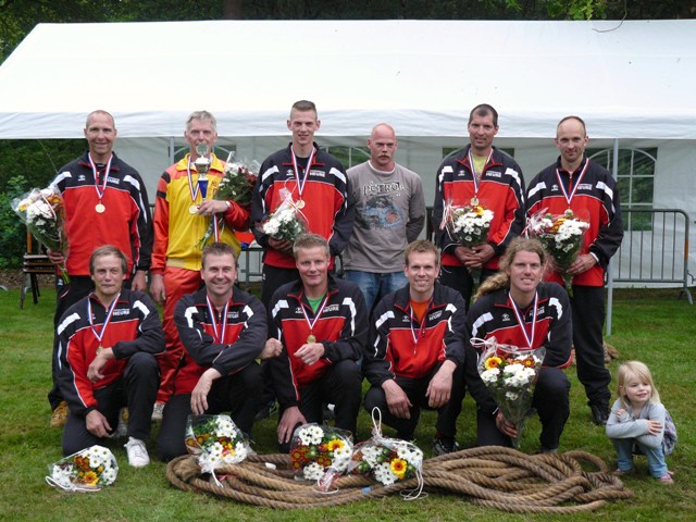 ttv Heure heeft op zaterdag 20 juni 2009 in Dalerpeel het Nederlandse Kampioenschap in de klasse 720 kg. behaald. Met gastspeler G.Jansen werden wij na moeizame wedstrijden, toch nog derde in de poule. Na de loting moesten wij in de halve finale tegen de Valleitrekkers. Na een harde strijd werd de eerste trekbeurt gewonnen. De tweede werd relatief makkelijk gewonnen dus door naar de finale. Hier moesten wij het opnemen tegen de Veenseboys. De eerste beurt werd kansloos verloren. De tweede beurt moest dus gewonnen worden. Er werd besloten om er dan maar hard in te gaan en zien waar het schip strand. Hier bleek achteraf dat de tegenstander toch meer geleden had dan we dachten, dus deze werd gewonnen. Er moest dus een derde en beslissende beurt getrokken worden. Na de toss, die verloren werd (hoe is dit mogelijk???) moesten wij het uitvechten op de slechtere kant. Weer hard erin, weer aan de winnende hand, toch halfweg een moeilijk moment doordat het tot staan kwam en de tegenstander weer iets terug haalde. Na een laatste inspanning kwam de "trein "weer moeizaam op gang en werd de winst toch nog behaald. Bij deze willen we Gerben Jansen bedanken voor zijn medewerking.